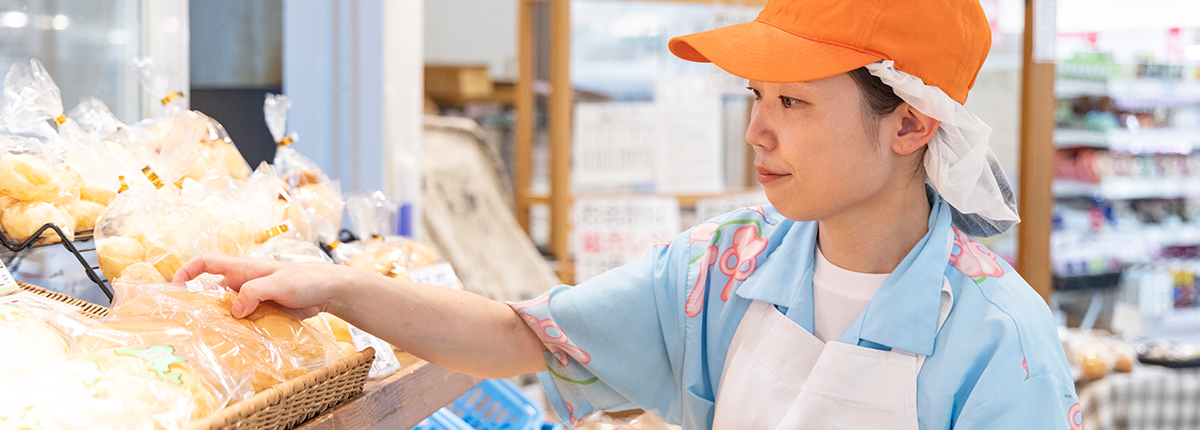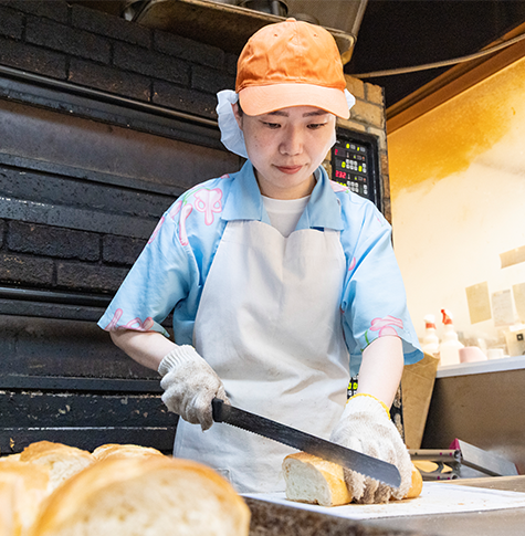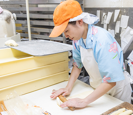 - 私も入社したときは、パンを焼いた経験なんて全くありませんでした。最初はレジや調理パンの担当から始まり、少しずつ仕込みや成形を教わってきました。いきなり難しい工程を任されることはなく、段階を踏んで練習できるので、意欲さえあれば、必ず技術は身についていきますよ。
