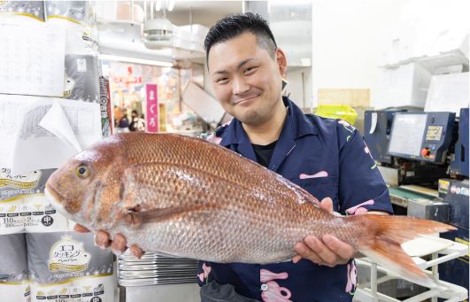 小さな鮮魚店からスタートした吉池。その吉池の鮮魚売場は吉池の中でも花形役者の位置づけの売場となっていて、毎日の食卓に新しい発見をお届けしています。お客様の「今日のおすすめは?」という問いかけに対し、旬の魚や珍しい魚を紹介し、食卓に驚きと感動を添えるのが私たちの仕事です。「この魚はどうやって調理するの?」といったご質問にも、知識を活かして丁寧にお答えします。お客様の生活に寄り添い、コミュニケーションも大切にしながらお客様一人ひとりのニーズに応え、食卓を豊かにするお手伝いをいたします。