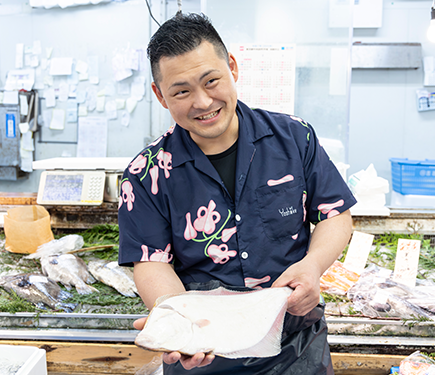 - 珍しい魚が入荷した際には、「どうすれば売れるか」を考えることにやりがいを感じています。切り身で提案するのか、丸ごとおすすめするのか、あるいは料理法を添えてご案内するのか――。自分なりに工夫しながら売り場をつくり、お客様に驚きや喜びを感じていただけたときの手応えは格別ですね。