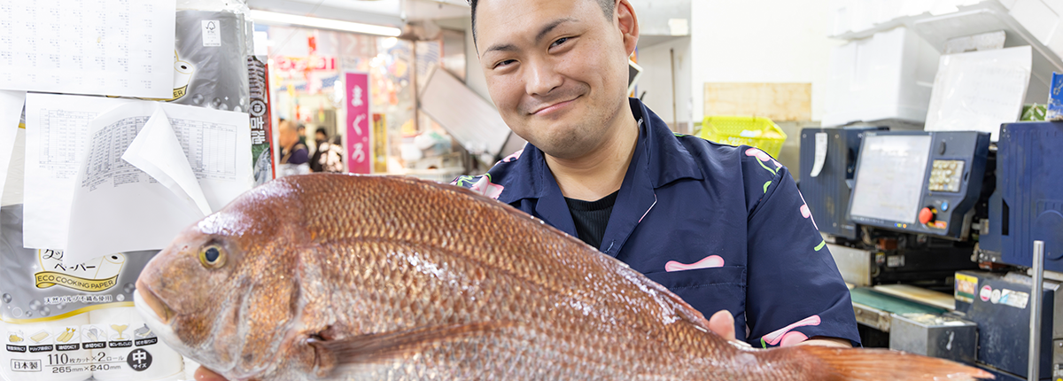鮮魚売場でマグロを中心に、鮮魚類の仕入れ・加工・販売を担当しています。入社してからというもの、鮮魚部門ひとすじ。あらゆる業務を経験し、今では常連のお客様や飲食店から名指しで注文をいただくこともあります。当たり前のことですが、魚は生き物。一本一本、状態が違うからこそ、慎重な見極めが大切です。その日に入った魚をお客様にどうアピールし、いかにして売り切るか。私にとっては、毎日の仕事が勝負です!